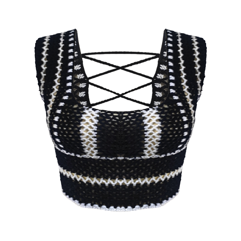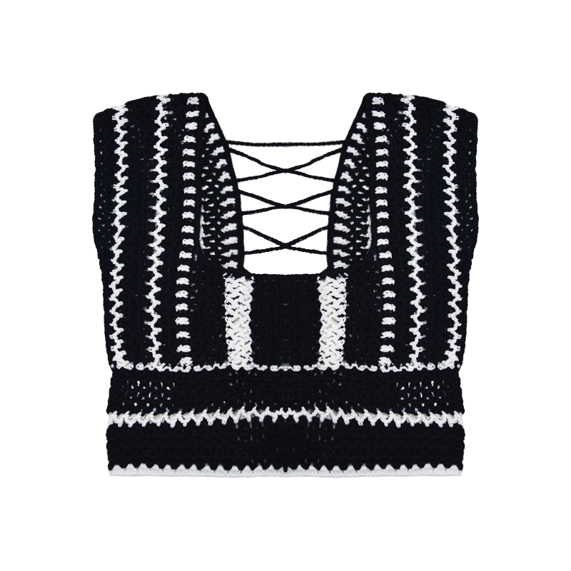 Black and White Striped Crochet Sexy Women's Tank Top